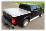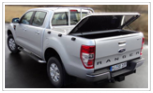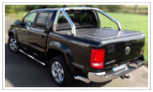 Ein hinteres Schloss verriegelt die Laderaumabdeckung mit der Fahrzeugklappe. Die Öffnung des Ladeflächendeckels erfolgt über 2 Gasdruckfedern. Vorhandene Schutzgitter und/oder Überrollbügel so wie Schutzwannen können der Ladeflächenklappe angepasst werden.